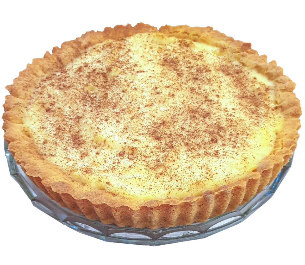 A simply dreamy tart with a sweet pastry crust, a creamy custard filling and sprinkle of cinnamon on top